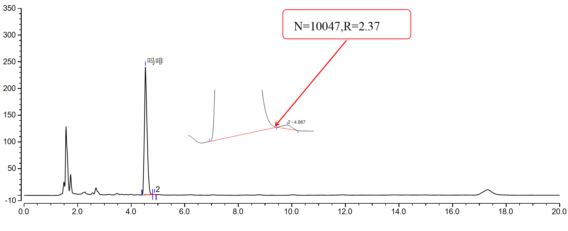色譜條件與系統(tǒng)適用性試驗(yàn):以十八烷基硅烷鍵合硅膠為填充劑;以乙腈-0.1%磷酸溶液(3∶97)為流動相;檢測波長為210nm。理論板數(shù)按嗎啡峰計(jì)算應(yīng)不低于1000。