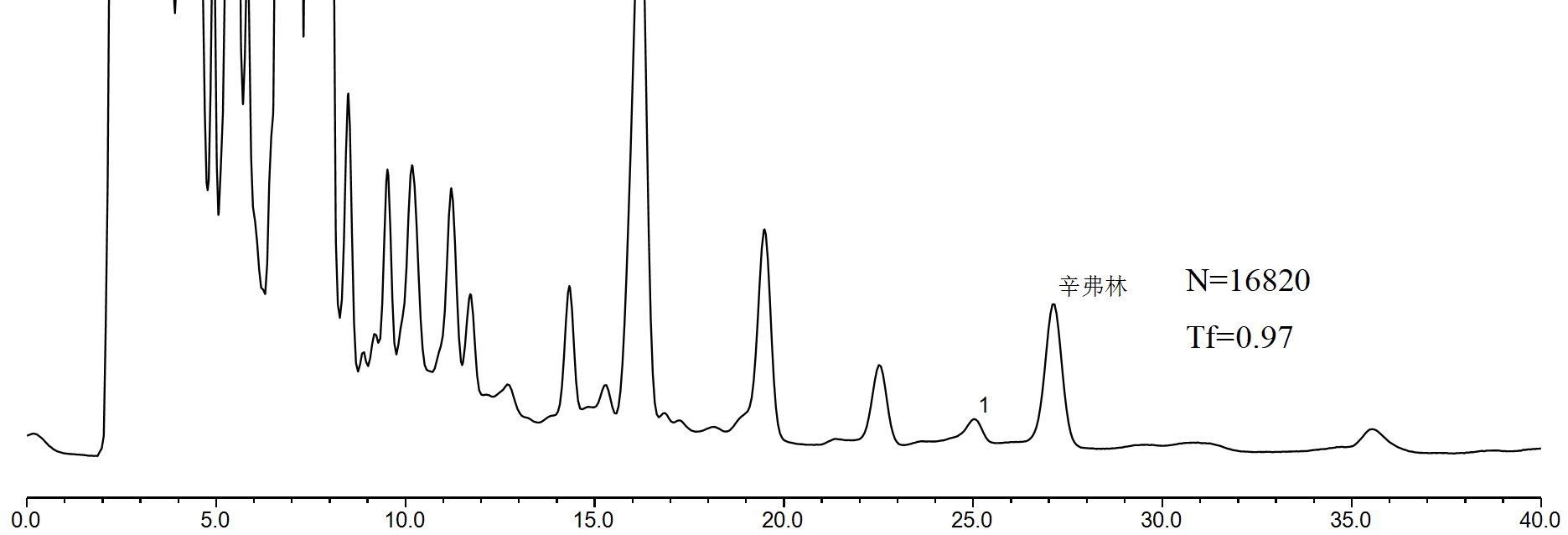 理論板數(shù)(16820)、拖尾因子(0.97)、分離度(2.47)均符合檢測要求。
